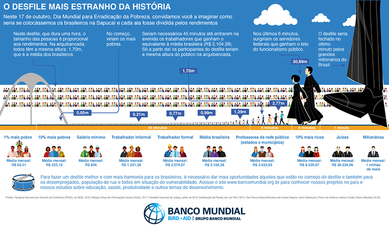 No mês em que a comunidade internacional lembra o Dia Internacional para a Erradicação da Pobreza, 17 de outubro, o Banco Mundial divulgou um infográfico que retrata a desigualdade de renda como se fosse a evolução de escola de samba na Sapucaí: “o desfile mais estranho da história”.