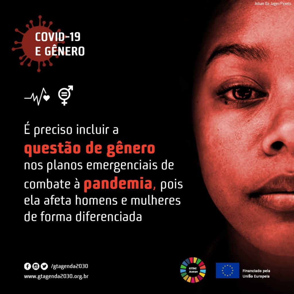 Ao longo do mês de maio, o Grupo de Trabalho da Sociedade Civil para a Agenda 2030 (GT Agenda 2030) publicou em suas mídias sociais uma série de cards sobre Covid-19 e gênero. A iniciativa teve como objetivo convidar para uma reflexão sobre a condição das mulheres durante a pandemia, pois elas estão sendo mais afetadas do que os homens.