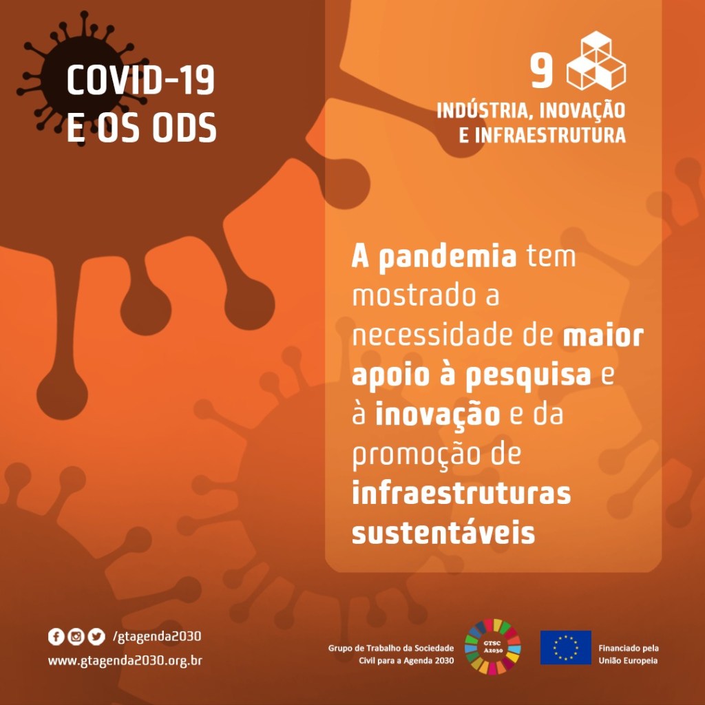 Pesquisa e inovação médica e tecnológica são fundamentais para que possamos compreender a Covid-19 e suas consequências e buscarmos soluções. Precisamos descobrir materiais, testes médicos, vacinas e tratamentos terapêuticos para garantirmos o direito à saúde das pessoas. A promoção de infraestruturas sustentáveis também é importante para a retomada do crescimento econômico, com foco no bem-estar humano, para que ninguém seja deixado para trás.