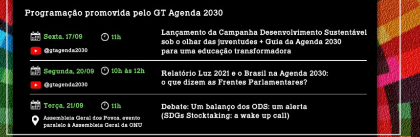 Encontro entre membros do GT Agenda 2030 e parlamentares do Congresso Nacional foi desenvolvido em paralelo à 67ª Assembleia Geral das Nações Unidas. Confira a transmissão ao vivo no YouTube